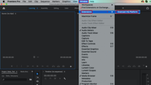6) In the Adobe Premiere Pro Panel – Go to “Window” and select “Extensions” followed by “Overcast HQ Platform”